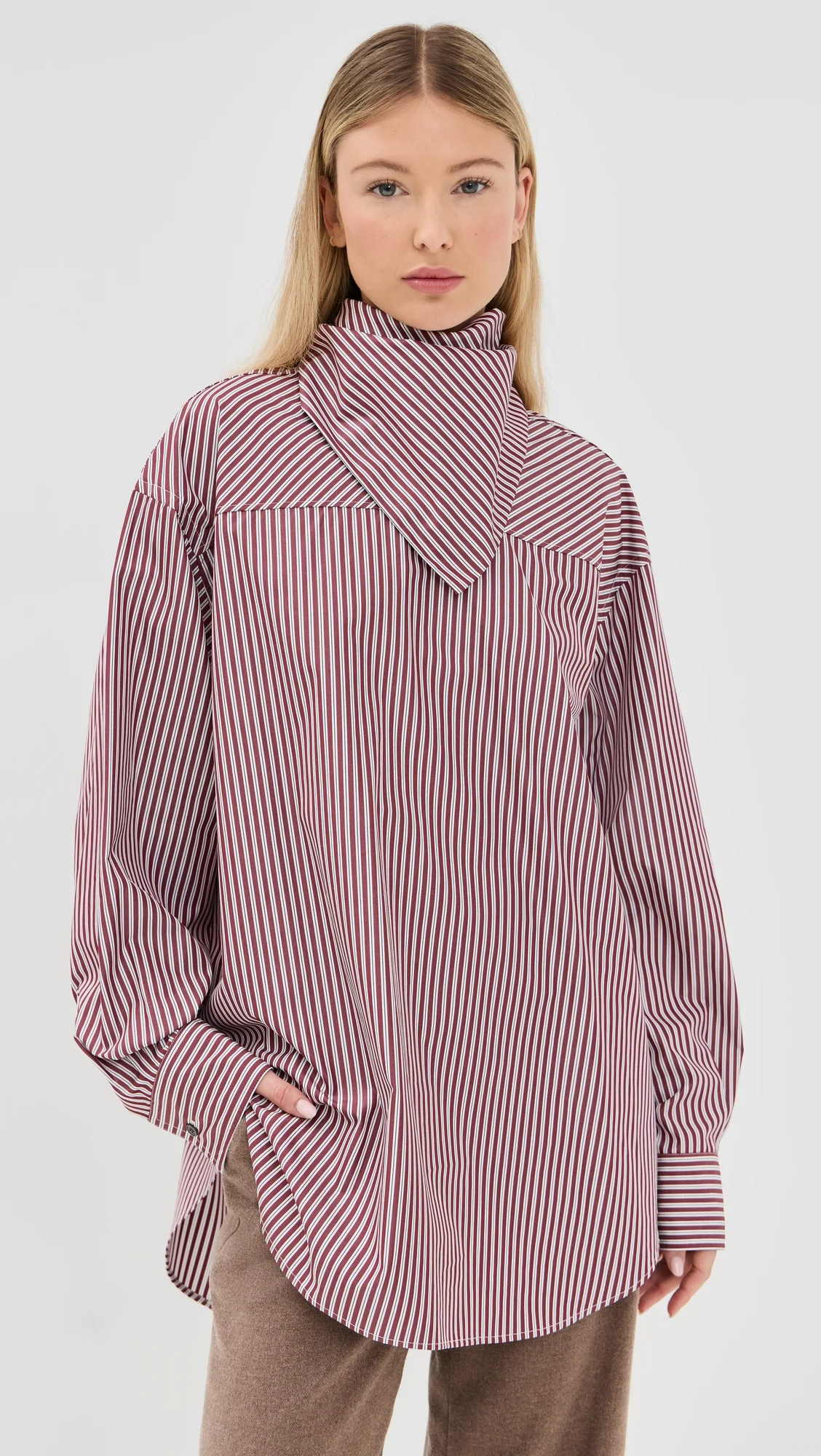 BURGUNDY COTTON LONG SLEEVES STRIPED BANDANA BLOUSE