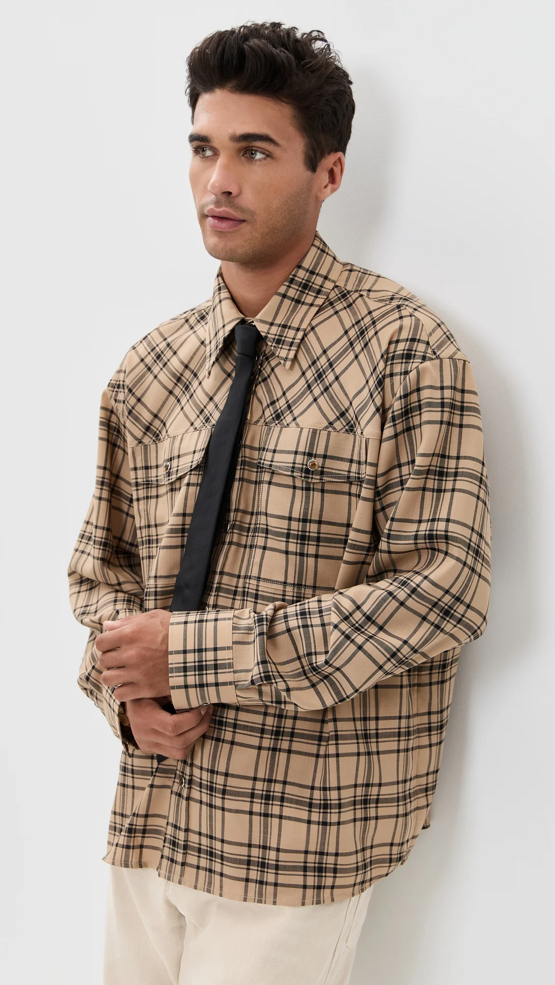BROWN WOOL CHECKED LUMBERJACK SHIRT