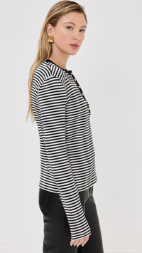- Fabric: Lightweight ribbed jersey - Stripe pattern - Henley style - Long sleeves - Partial snap placket - Shell: 95% cotton/5% spandex - Wash cold - Imported, Turkey Style #ANINE31197