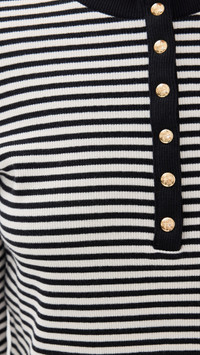 Alessia Long Sleeve Tee - Cream And Black Stripe