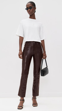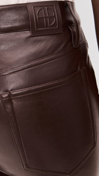 - Fabric: Mid-weight, non-stretch composition leather - Button closure and zip fly - 5-pocket styling - Shell: 48% leather/27% polyurethane/25% polyester - Hand wash - Imported, Cambodia Style #ANINE31372 Size & Fit Model measurements: Size 25: Cher (5'11") usually wears size 24-25 Measurements from size 25 Rise: 9.75in / 25cm Inseam: 29.25in / 74cm Leg opening: 14.25in / 36cm
