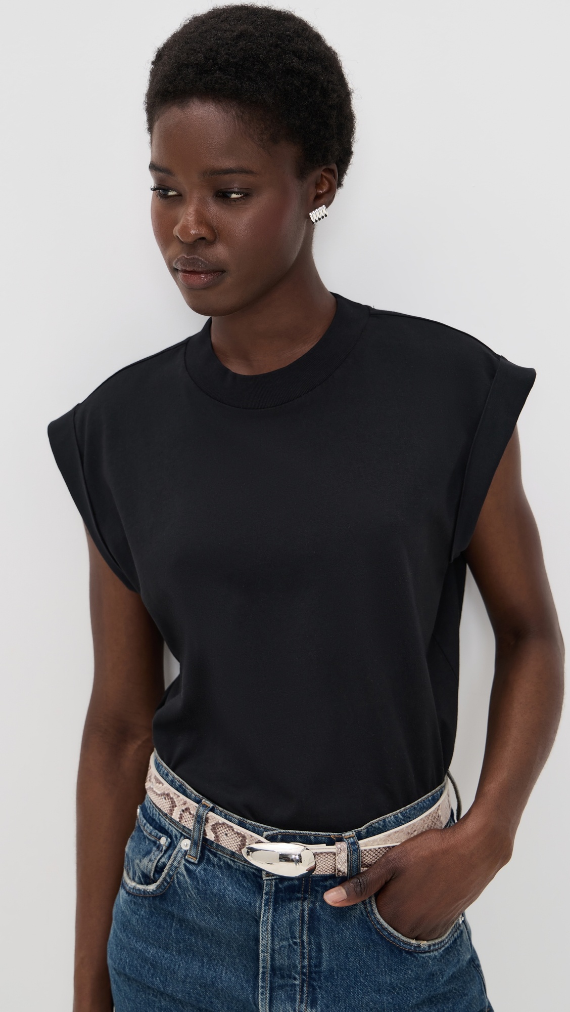 - Fabric: Mid-weight jersey - Gold-tone logo charm at front - Mock neck - Short sleeves with fixed cuffs - Shell: 100% cotton - Wash cold - Imported, Turkey Style #ANINE31280