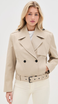 - Fabric: Mid-weight, non-stretch twill - Button epaulettes - Collared neck - Long sleeves - Double-breasted button placket - Optional self-belt at waist - Welt front pockets - Shell: 100% cotton - Lined - Lining: 52% viscose/48% polyester - Wash cold - Made in Portugal Style #ANINE31304 Size & Fit Customers say: Runs large; please size down. Model measurements: Size S: Lola (5'8") usually wears size S Measurements from size S Length: 21.25in / 54.0cm, from shoulder