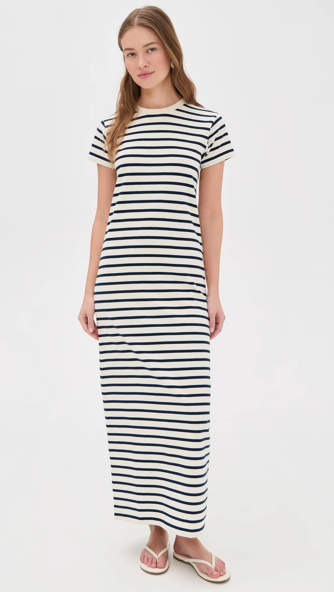 - Fabric: Mid-weight stretch jersey - Stripe pattern - Maxi length - Crew neck - Short sleeves - No closure, pull-on design - Shell: 100% cotton - Unlined - Wash cold - Imported, Turkey Style #ANINE31463 Size & Fit Model measurements: Size XS: Bianca (5'8.5") usually wears size XS Measurements from size XS Length: 52.25in / 133.0cm, from shoulder to front hem
