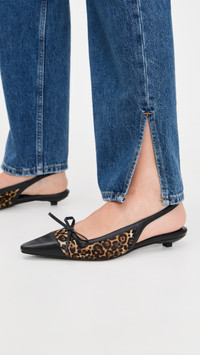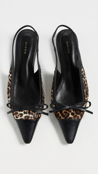 - Dyed haircalf (cow), from Italy - Upper: Cowhide - Slingback strap with elastic inset - Fixed bow accent at top - Smooth leather toe cap - Leopard print haircalf - Gold-tone logo charm at side - Cushioned footbed - Lining: Leather - Kitten heel - Slip on - Pointed toe - Leather sole with rubber heel cap - Imported, Turkey - This item cannot be gift-boxed Style #ANINE31348
