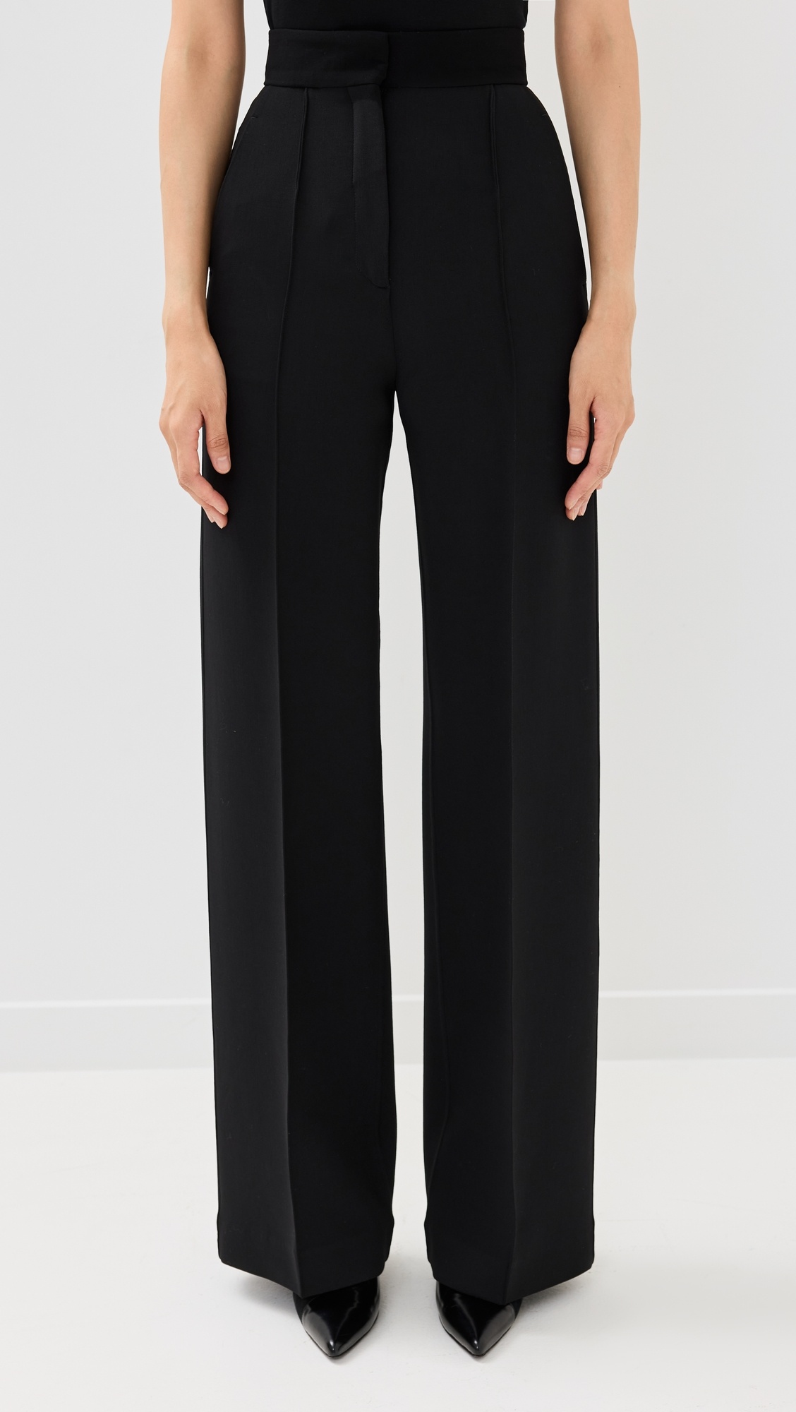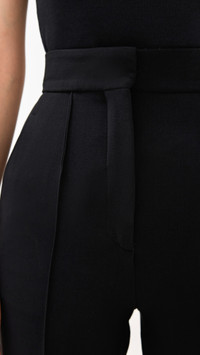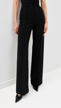 - Fabric: Heavyweight stretch crepe - Another Tomorrow is part of The Climate Pledge, a commitment to reaching net-zero carbon emissions by 2040 - Pintucks at front - Hook-and-eye closures at waist, button fly - Slant hip pockets and welt back pockets - Shell: 96% wool/4% elastane - Dry clean - Made in Italy Style #ANTOM30032 Size & Fit Model measurements: Size 36: Somin (5'10.5") usually wears size 36-38 Measurements from size 36 Rise: 14.25in / 36cm Inseam: 34.75in / 88cm Leg opening: 23.5in / 60cm