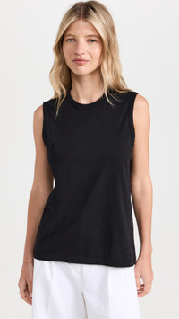 - Fabric: Lightweight jersey - Another Tomorrow is part of The Climate Pledge, a commitment to reaching net-zero carbon emissions by 2040 - Crew neck - Shell: 100% cotton - Wash cold - Made in Portugal - Sleeveless Style #ANTOM30019 Size & Fit Model measurements: Size XS: Emily (5'6.75") usually wears size XXS Measurements from size XS Length: 22.75in / 58.0cm, from shoulder