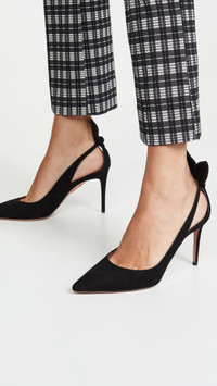 - Leather: Lambskin - Wired bow accent at back heel - Stiletto heel - Pointed toe - Leather sole - Made in Italy - This item cannot be gift-boxed - Pumps Style #AQUDB30703 Size & Fit Heel: 3.25in / 85mm