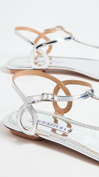 - Upper: Metallic faux leather - Adjustable buckle ankle strap - Padded footbed - Leather sole with rubber heel cap - Made in Italy - This item cannot be gift-boxed Style #AQUDB31090 Size & Fit Customers say: Runs small; please size up.