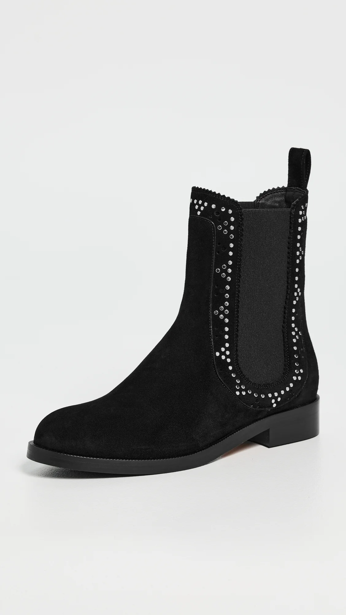 - Upper: Suede - Silver-tone studded trim - Elastic gores - Pull tabs - Lining: Leather - No closure, pull-on design - Round toe - Leather sole with rubber patch - Made in Italy - This item cannot be gift-boxed Style #AQUDB31189