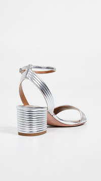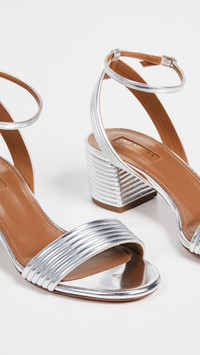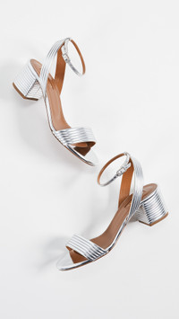- Fabric: Metallic faux leather - Goatskin lining - Chunky heel - Buckle ankle strap - Leather sole with rubber patch - Made in Italy - This item cannot be gift-boxed - Strappy silhouette - Open toe Style #AQUDB30635 Size & Fit Customers say: Runs large; please size down. Heel: 2in / 50mm