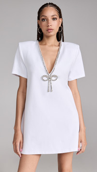 Crystal Bow V Neck T-Shirt Dress