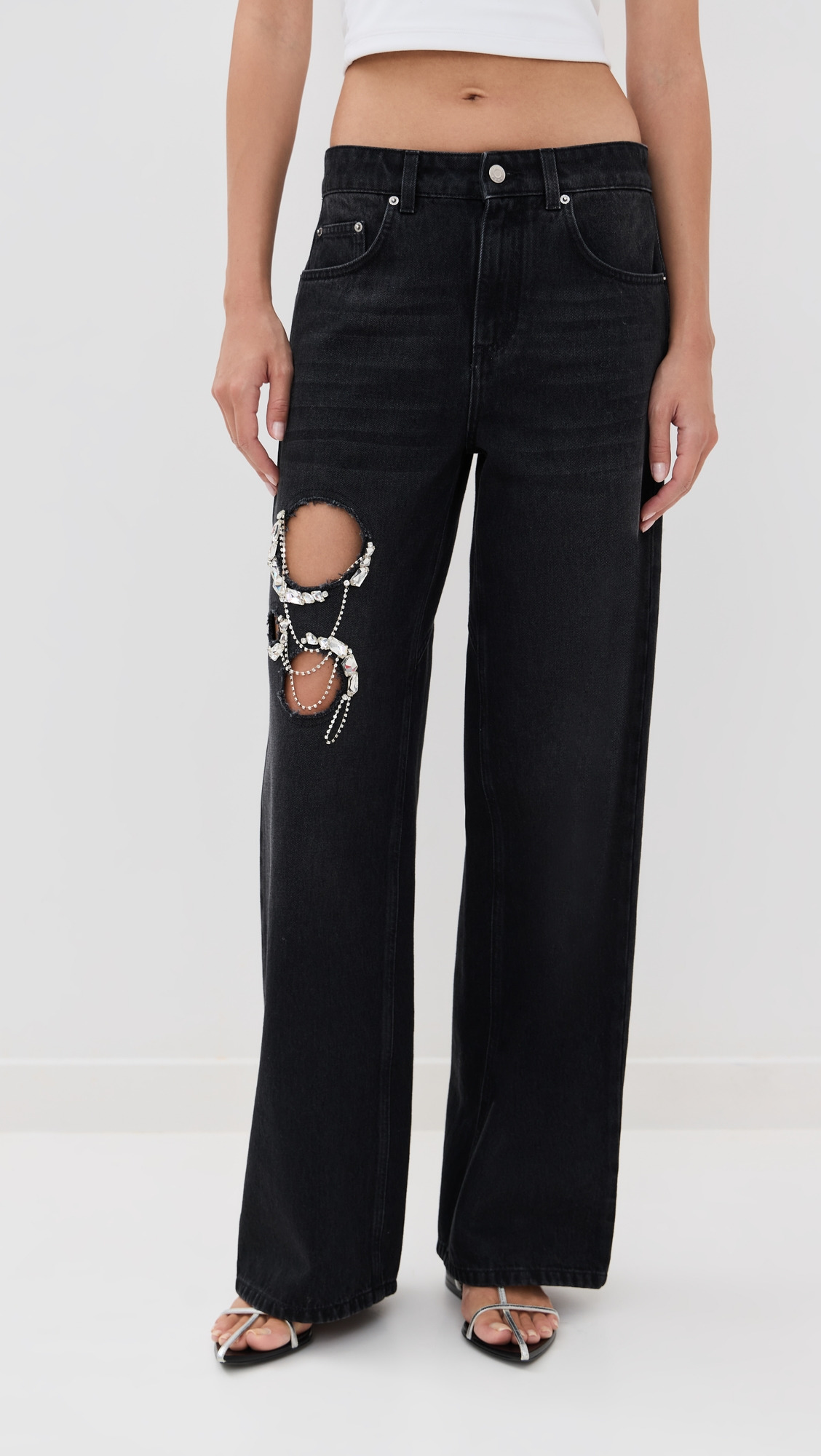 CRYSTAL CHAIN CUTOUT RELAXED JEAN