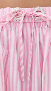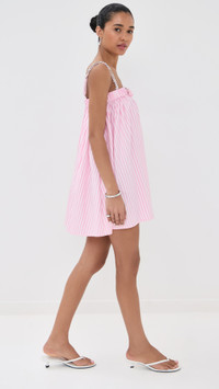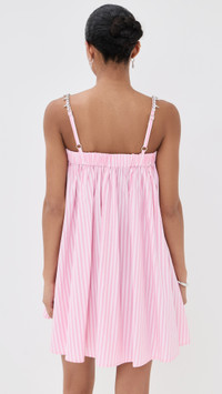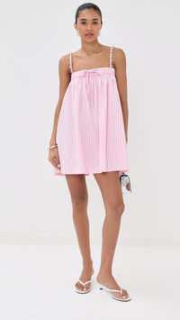 - Fabric: Lightweight, non-stretch poplin - Covered elastic band and drawstring at bust - Crystal grommets and trim - Stripe pattern - Silver-toned hardware - Mini length - Square neckline - Sleeveless - Hook-and-eye and hidden zip at side - Shell: 50% cotton/50% polyester - Unlined - Hand wash - Imported, China Style #AREAA30313