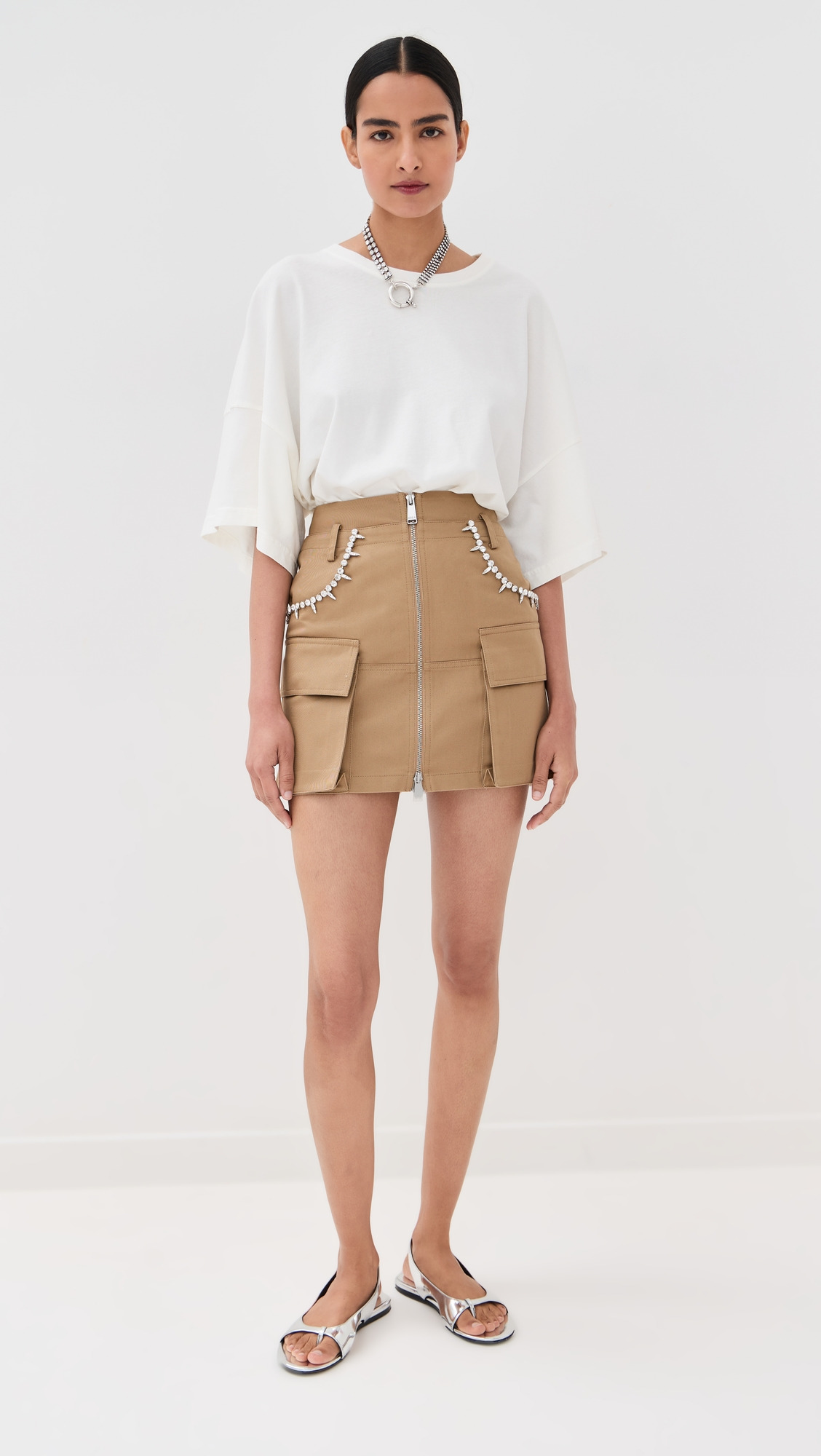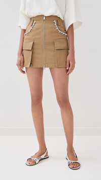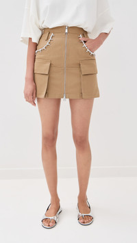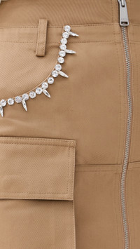 - Fabric: Mid-weight, non-stretch denim - Crystal trim at front pockets - Stitched heart detail at back - Two-way zip closure - Flap front pockets - Patch back pocket - Slant hip pockets - Shell: 100% cotton - Unlined - Hand wash - Imported, China Style #AREAA30312
