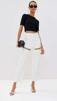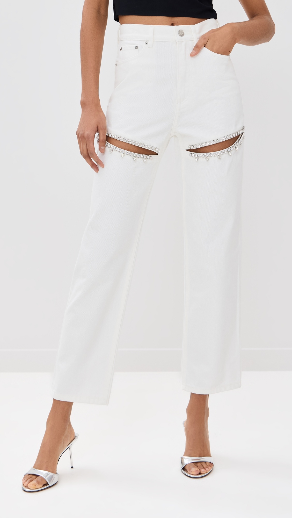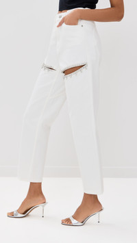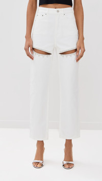 - Fabric: Mid-weight, non-stretch denim - Crystal embellished front slits - Button closure and zip fly - 5-pocket styling - Shell: 100% cotton - Dry clean - Imported, China Style #AREAA30302