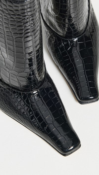 - Upper: Leather - Croc-embossed finish - Lining: Leather - Kitten heel - No closure, pull-on design - Square toe - Leather sole with rubber heel cap - Made in Italy - This item cannot be gift-boxed Style #AWAKE30430 Size & Fit Heel: 2in / 50mm Shaft: 7.75in / 20cm Circumference: 19.25in / 49cm