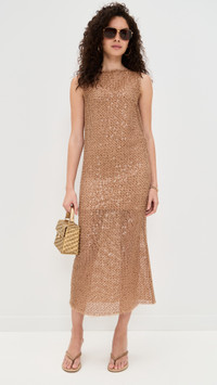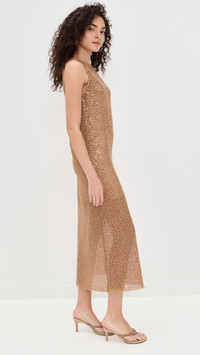 - Fabric: Lightweight, non-stretch mesh - Midi length - Boat neck - Pullover design, no closure - Semi-sheer - Shell: 100% polyester - Optional slip lining with adjustable straps - Lining: 100% cotton - Dry clean - Made in Australia - Sleeveless Style #BECBR40610 Size & Fit Customers say: Runs large; please size down. Model measurements: Size 4: Brianna (5'9") usually wears size 4 Measurements from size 4 Length: 49.5in / 126.0cm, from shoulder