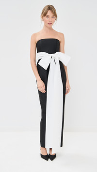 - Fabric: Lightweight, non-stretch taffeta - Contrast bow at front - Slit at back - Maxi length - Strapless - Sleeveless - Hidden zip at back - On-seam side pockets - Shell: 78% polyester/20% polyamide/2% elastane - Unlined - Dry clean - Imported, Romania Style #BERNA30091 Size & Fit Model measurements: Size 34: Lila (5'10") usually wears size 32 Measurements from size 34 Length: 50in / 127.0cm, from center back