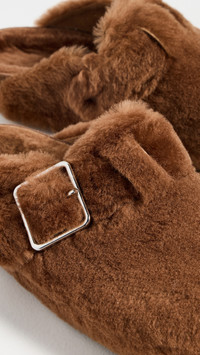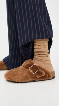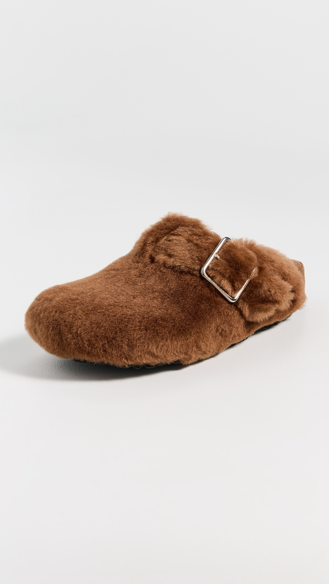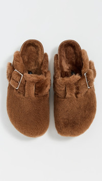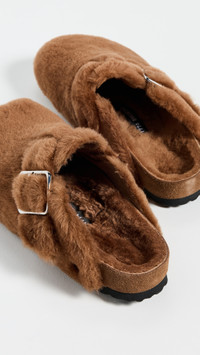 - Upper: Dyed lamb shearling, from Spain - Narrow fit - Molded footbed - Cork midsole - Buckle strap - Lining: Shearling - Slip on - Round toe - EVA sole - Made in Germany - This item cannot be gift-boxed Style #BIRSE30063