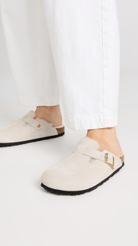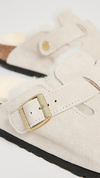 - Natural lamb shearling, from New Zealand - Upper: Sheepskin - Molded footbed - Narrow fit - Buckle vamp strap - Rounded toe - EVA sole - Made in Germany - This item cannot be gift-boxed Style #BIRKE30493