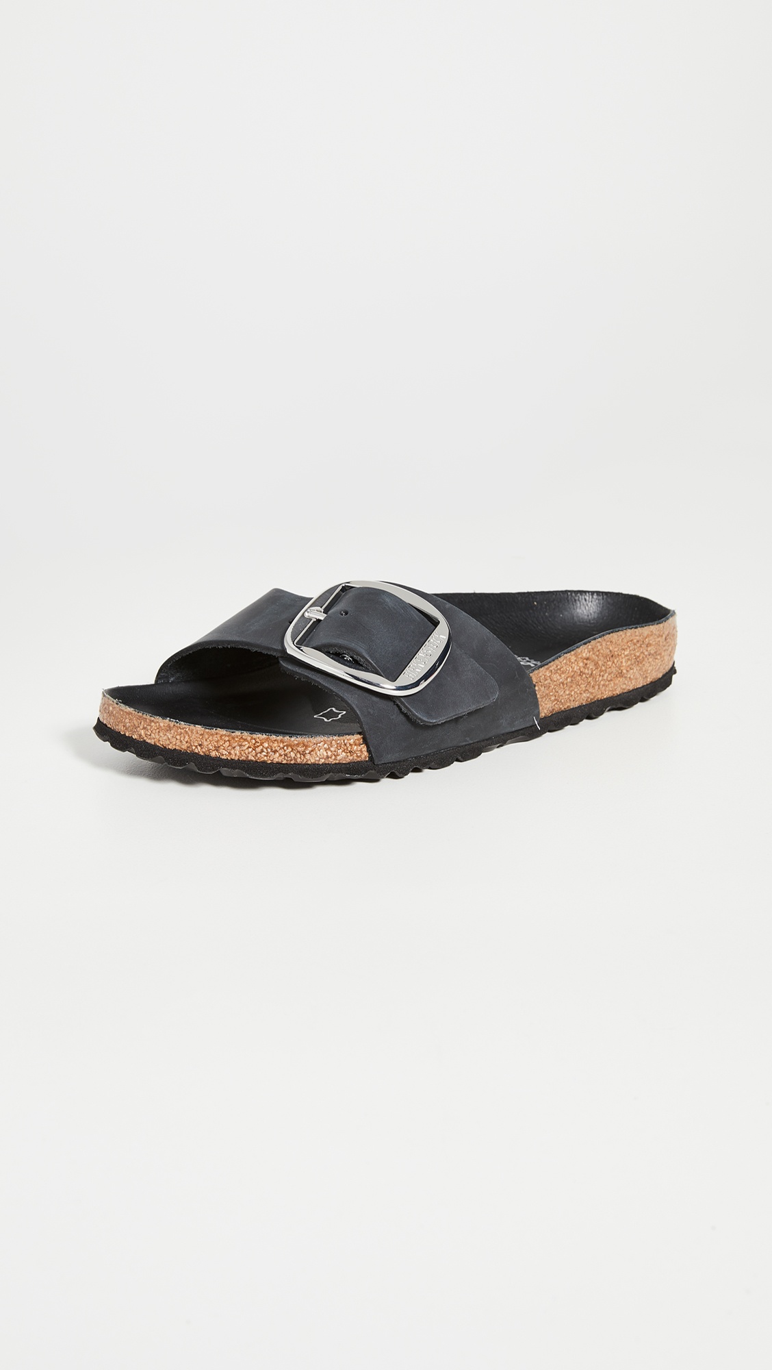 - Leather: Cowhide - Molded cork footbed with leather lining - Exaggerated buckle closure - Narrow fit - EVA sole - Made in Germany - This item cannot be gift-boxed - Slide sandals - Open toe Style #BIRKE30163 Size & Fit Narrow styles are recommended for narrow to medium width. Customers say: Runs large; please size down.