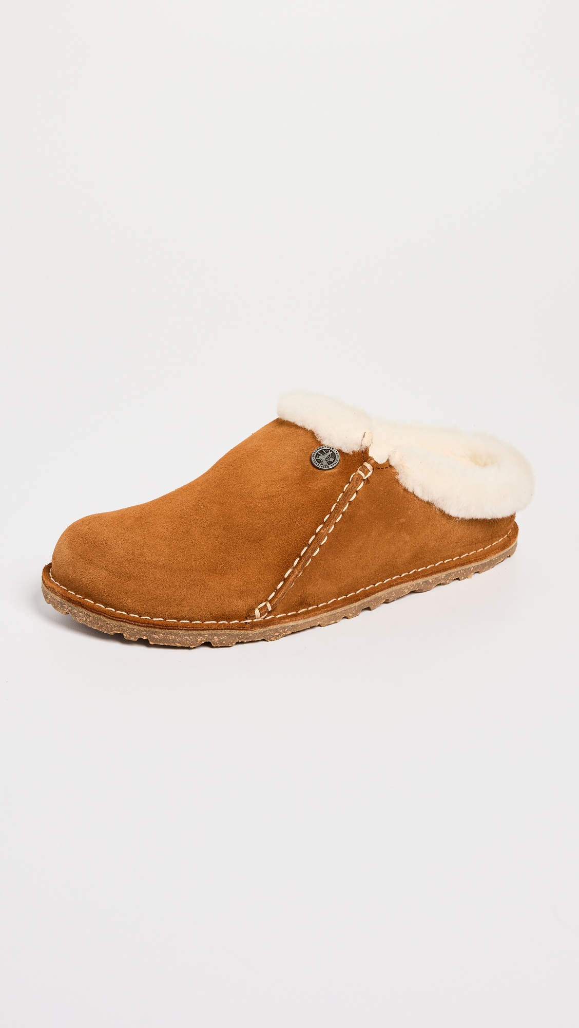 - Natural sheep shearling, from New Zealand - Fabric: Sheepskin - Shearling lined footbed - Embroidered logo at side - Narrow fit - Round toe - Crepe rubber sole - Made in Germany - This item cannot be gift-boxed Style #BIRKE30437