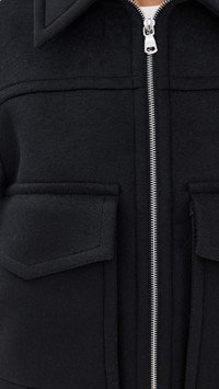 - Fabric: Mid-weight, non-stretch wool felt - Elastic hem - Collared neck - Long sleeves with snap cuffs - Zip at front - Flap front pockets - Shell: 100% wool - Lined - Lining: 100% viscose - Dry clean - Imported, Lithuania Style #BITES30043 Size & Fit Model measurements: Size 32: Mical (5'10") usually wears size 32 Measurements from size 32 Length: 21.75in / 55.0cm, from shoulder