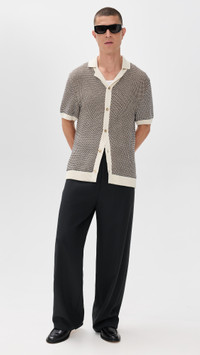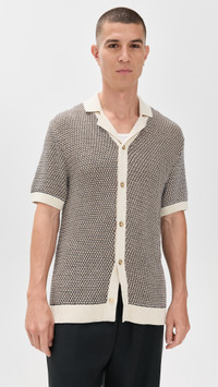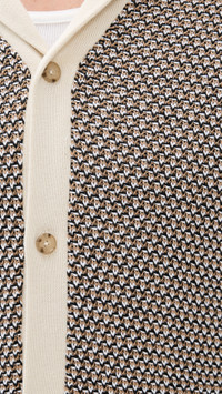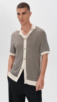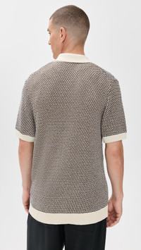 - Fabric: Lightweight, textured knit with stretch - Contrast ribbed trim - Camp collar - Short sleeves - Button placket - Shell: 100% cotton - Wash cold - Imported, Turkey Style #BHUGO30556