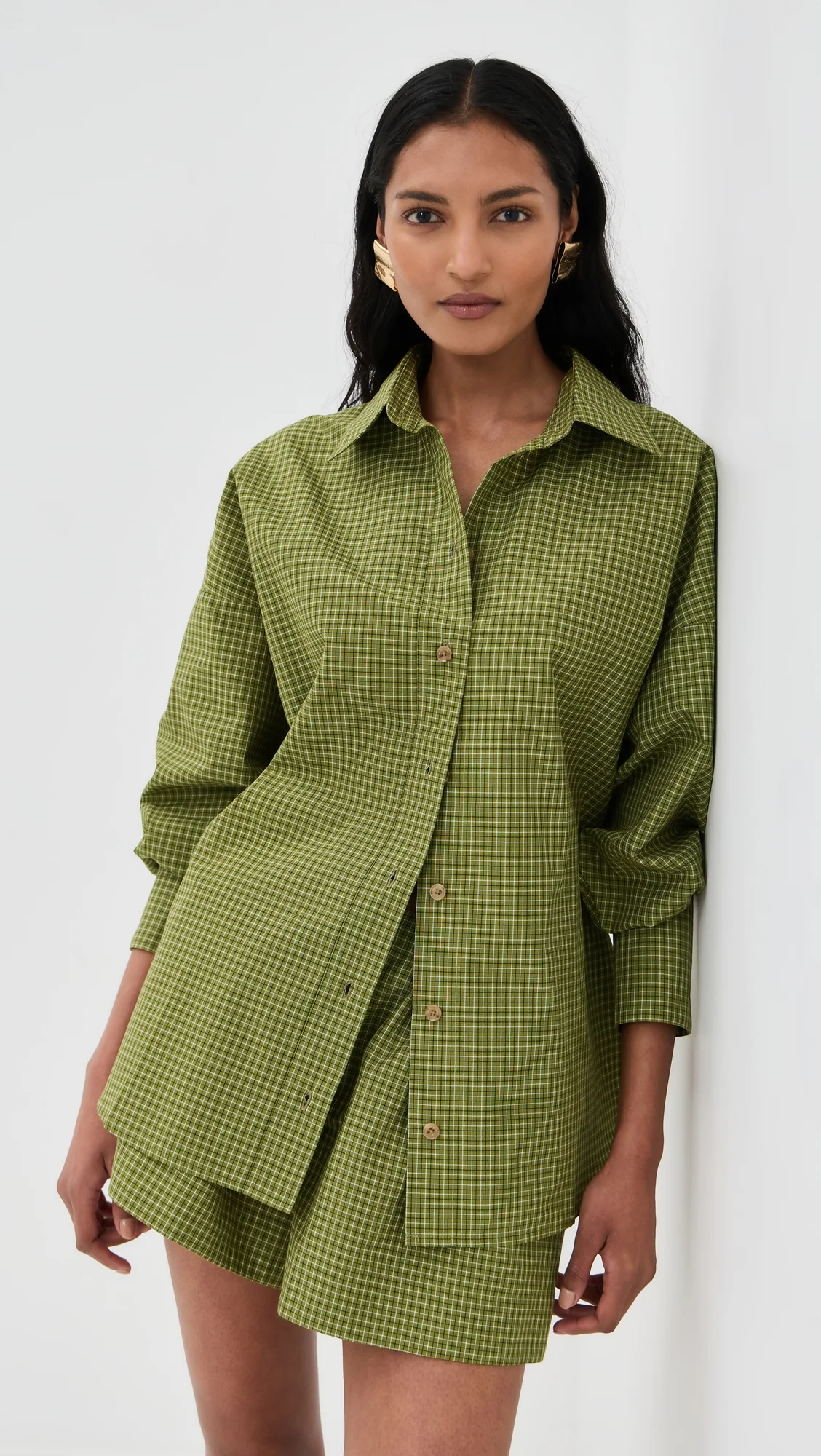 - Fabric: Mid-weight, non-stretch weave - Checkered pattern - Collared neck - Long sleeves with button cuffs - Button placket - Shell: 100% cotton - Unlined - Dry clean - Made in the USA Style #BMAXW30219