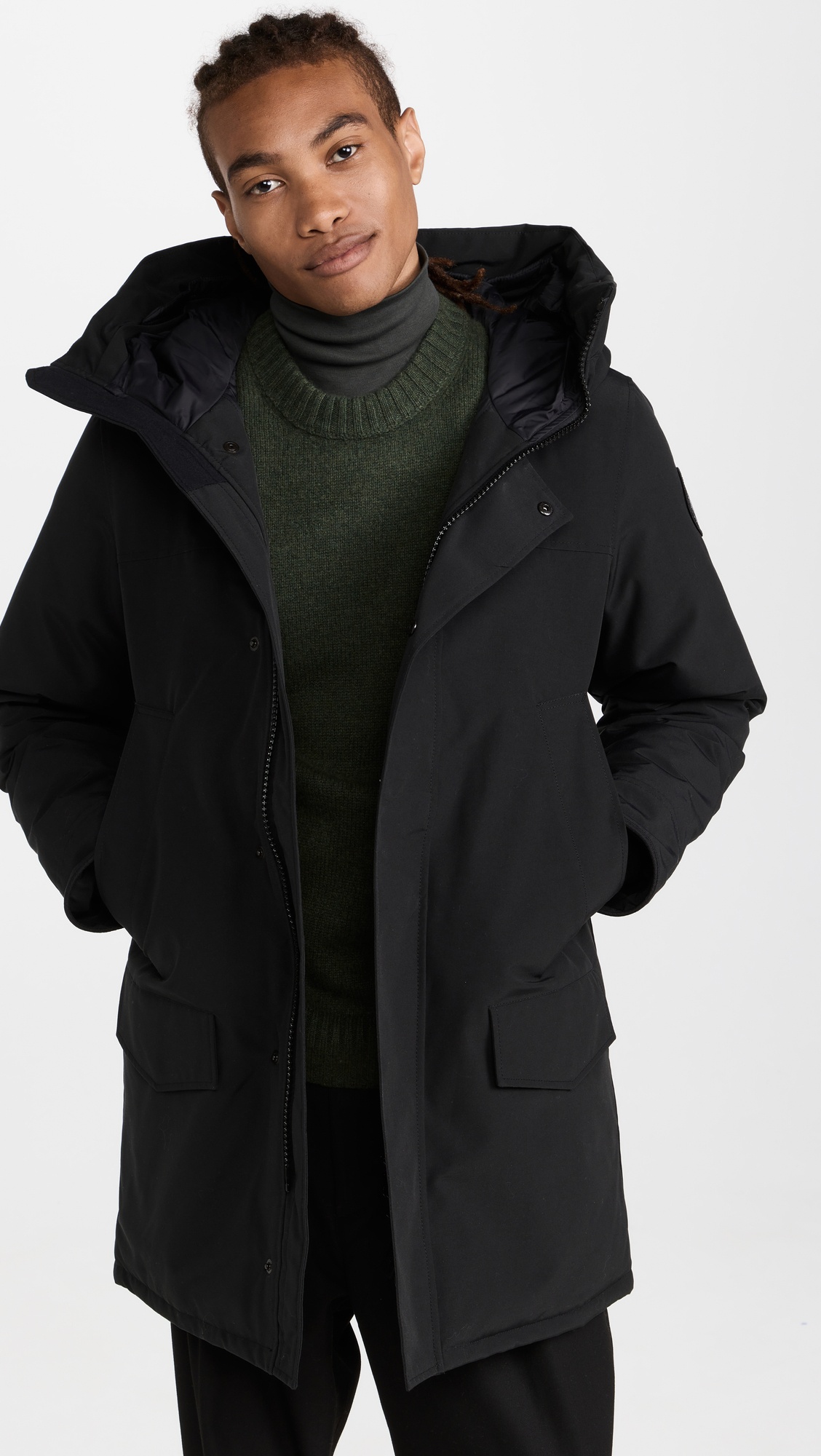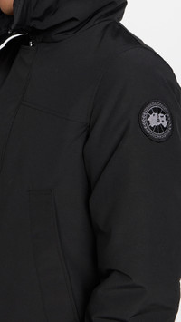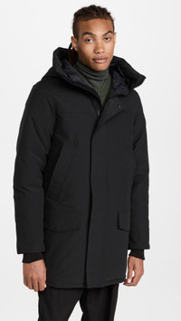 - Fabric: Heavyweight non-stretch technical weave - Hooded neck and long sleeves - Tonal ribbed trim - Logo patch at side - Snap flap and hidden zip placket - Flap and welt front pockets - Zip and patch interior pocket - Shell: 84% polyester/16% cotton - Lined - Lining: 100% polyamide - Fill: 80% down/20% feathers - Dry clean - Imported, China - This item cannot be gift-boxed Style #CANAD30666 Size & Fit Measurements from size M Length: 32.75in / 83cm Sleeve: 36.5in / 93cm Chest: 43.25in / 110cm