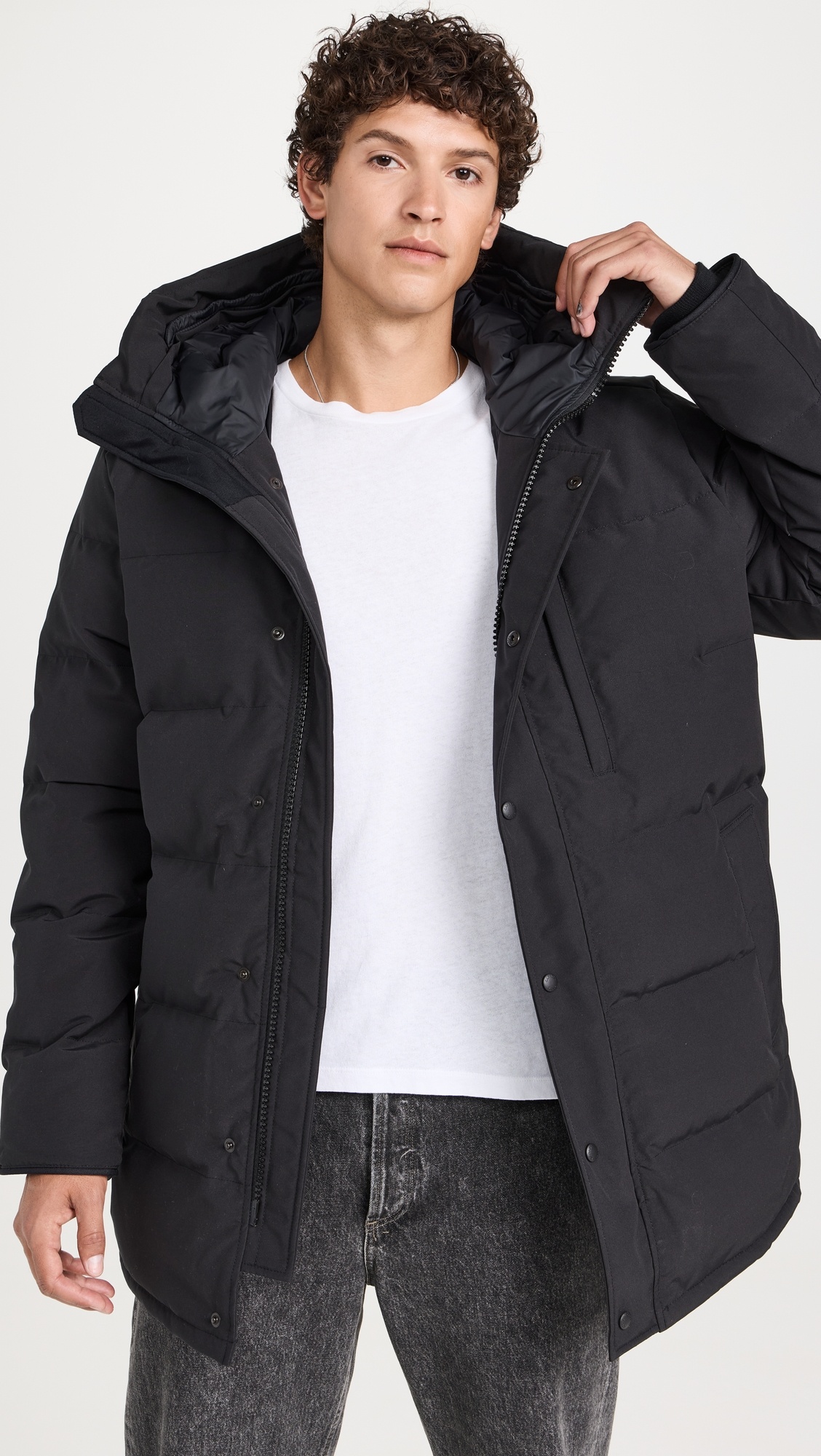 - Fabric: Heavyweight, non-stretch quilted Arctic Tech weave - Ribbed knit cuffs to lock in heat - Interior backpack straps for hands-free carrying - Adjustable down-filled hooded neckline - Snap flap and hidden two-way zip placket - 3 zip pockets at exterior - 1 zip pocket and 1 mesh pockets at interior - Shell: 85% polyester/15% cotton - Lined - Lining: 100% nylon - Fill: 100% duck down - Dry clean - Made in Canada - Warmth rating: - -13° to 5°F / -25° to -15°C Style #CANAD30817 Size & Fit Measurements from size M Length: 31.5in / 80cm Sleeve: 38.5in / 98cm Chest: 47.25in / 120cm