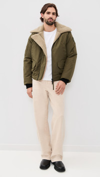 - Fabric: Heavyweight, non-stretch technical weave - Sherpa trim - Ribbed knit cuffs and hem - Interior backpack straps for hands-free carrying - Collared neckline - Long raglan sleeves - Two-way zip closure - Slant and flap front pockets - Shell: 84% polyester/16% cotton - Lined - Lining: 100% polyamide - Fill: 90% down/10% feathers - Dry clean - Made in Canada - Warmth rating: - -15° to 0°F / -25° to -15°C Style #CANAD30878 Size & Fit Model measurements: Size M: Gordon (6'1") usually wears size M Measurements from size L Length: 26.75in / 68cm Sleeve: 36.25in / 92cm Chest: 52.75in / 134cm