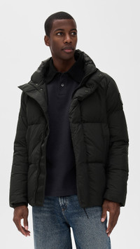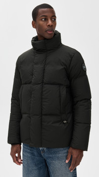 - Fabric: Heavyweight non-stretch technical weave - Quilted design - Banded trim - Collared neckline - Long sleeves - Snap flap and hidden zip placket - Zip front pockets - Zip and patch interior pockets - Shell: 100% polyamide - Lined - Fill: 90% down/10% feathers - Wash cold - Made in Canada Style #CANAD30912 Size & Fit Model measurements: Size L: Magor (6'3") usually wears size L Measurements from size M Length: 27.25in / 69cm Sleeve: 35.5in / 90cm Chest: 47.25in / 120cm