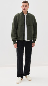 - Fabric: Heavyweight stretch fleece - Logo patch at sleeve - Recycled wool - Ribbed trim - Collared neckline - Long sleeves with elastic cuffs - Snap placket - Zip front pockets - Shell: 60% wool/16% lyocell/13% polyester/8% polyamide/3% other fibers - Trim: 66% wool/19% lyocell/10% polyamide/4% other fibers/1% elastane - Partially lined - Dry clean - Made in Canada Style #CANAD30875 Size & Fit Model measurements: Size M: Louis (6'0") usually wears size M Measurements from size M Length: 26.5in / 67cm Sleeve: 35in / 89cm Chest: 22.5in / 57cm