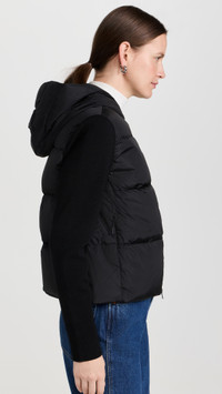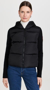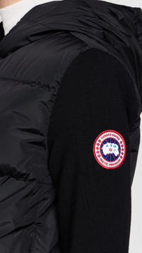 - Fabric: Mid-weight, non-stretch technical weave - Quilted design - Logo patch at arm - Hooded neckline - Two-way zip closure - Zip front pockets - Shell: 90% wool/9% polyamide/1% elastane - Lined - Lining: 100% polyamide - Fill: 90% down/10% feathers - Dry clean - Imported, Romania - Ribbed knit long sleeves Style #CANAD30788 Size & Fit Customers say: Runs small; please size up. Model measurements: Size S: Oksana (5'9") usually wears size XS-S Measurements from size S Length: 21.25in / 54.0cm, from shoulder