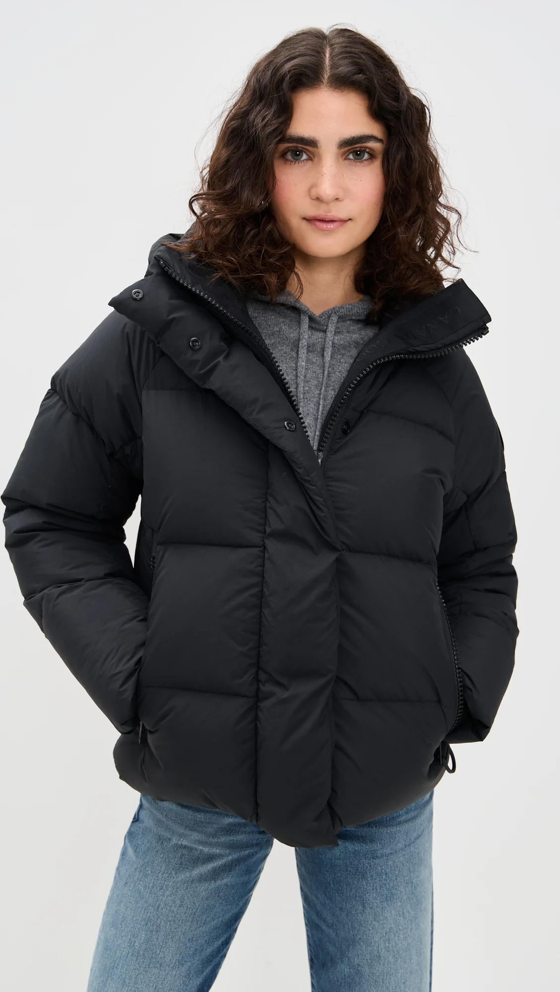 - Fabric: Mid-weight, non-stretch technical weave - Zip-off drawstring hood with reflective webbing - Interior backpack straps for easy, hands-free carrying - Snap flap and two-way zip placket - Inset ribbed knit cuffs - Interior drawcord at hem - Insulated, fleece-lined hip pockets with zip closures - 3 interior pockets: security pocket with zip closure, 2 mesh drop-in pockets - Water and wind resistant - Shell: 100% polyamide - Lined - Fill: 90% down/10% feathers - Wash cold - Made in Canada - Warmth rating: - -4° to 14°F / -20° to -10°C Style #CANAD30914