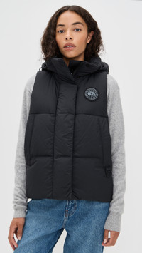 - Fabric: Mid-weight, non-stretch weave - Logo patch at chest - Removeable hood - Insulated, fleece lined zip pockets - Sleeveless - Snap flap and hidden zip placket - Patch interior pocket - Shell: 100% polyamide - Lined - Lining: 100% polyester - Fill: 90% duck down/10% duck feathers - Wash cold - Made in Canada Style #CANAD30863