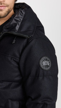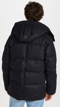 - Fabric: Heavyweight, non-stretch quilted wool felt - Durable and water resistant - Long sleeves with recessed rib-knit cuffs - Snap flap and hidden zip placket - Tricot-lined chinguard - Zip exterior and interior pockets - Drawstring hood - Shell: 72% wool/23% polyamide/5% other fibers - Lined - Lining: 100% polyester - Fill: 80% duck down/20% feathers - Dry clean - Made in Canada - Warmth rating: - -14 to -4°F / -10 to -20°C Style #CANAD30671 Size & Fit Model measurements: Size M: Alix (6'1") usually wears size M Measurements from size M Length: 27.5in / 70cm Sleeve: 34.75in / 88cm Chest: 43.25in / 110cm