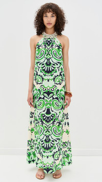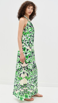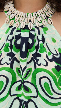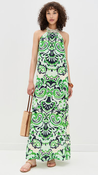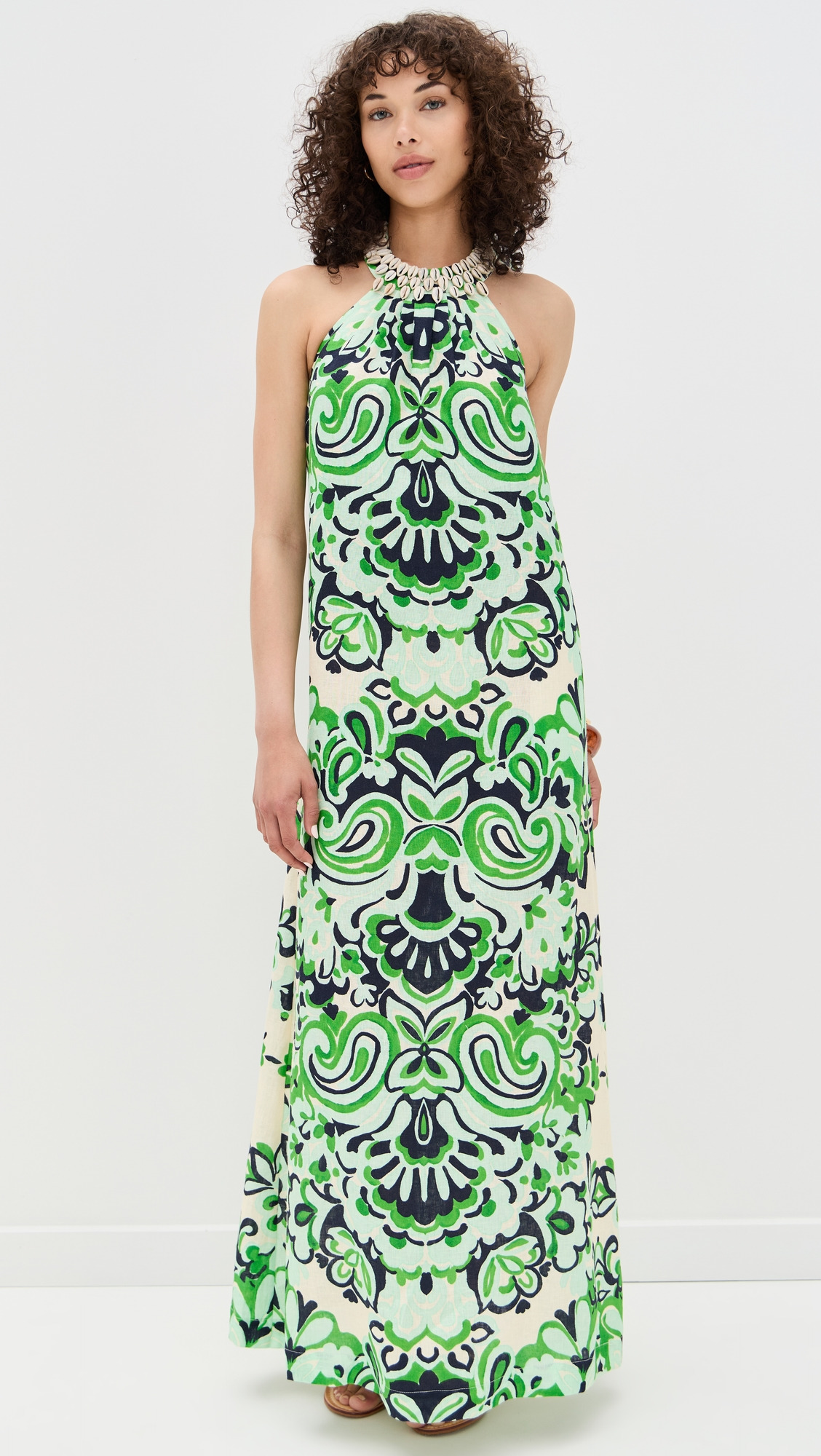- Fabric: Lightweight, non-stretch linen weave - Floral print - Seashell accents - Maxi length - Halter neckline - Sleeveless - Ties at back - Shell: 100% linen - Unlined - Dry clean - Imported, China Style #CCARA30308 Size & Fit Model measurements: Size XS: Alexa (5'9") usually wears size XS Measurements from size XS Length: 58.25in / 148.0cm, from shoulder