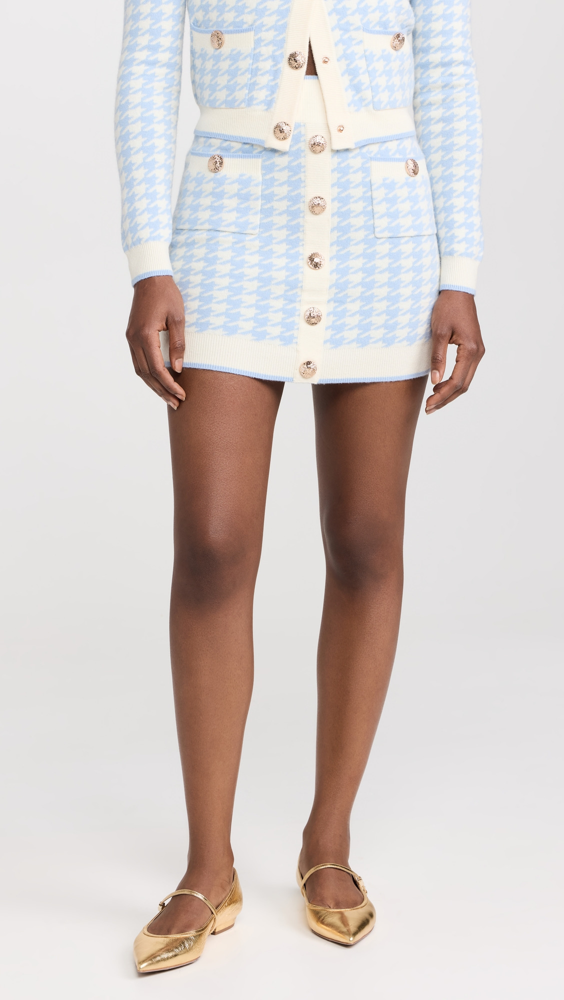 - Fabric: Mid-weight stretch knit - Houndstooth pattern - Gold-tone buttons - Mini length - Covered elastic waistband and ribbed edges - Patch front pockets - Shell: 90% wool/10% cashmere - Unlined - Dry clean - Imported, China Style #CCARA30256