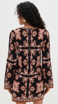 - Fabric: Mid-weight stretch knit - Abstract pattern - Frayed trim - Mini length - Crew neck - Long sleeves - Zip at back - Shell: 55% wool/45% cotton - Unlined - Dry clean - Imported, China Style #CCARA30333