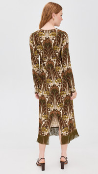 - Fabric: Lightweight stretch jersey - Floral print - Slit at back - Fringe trim at hem - Midi length - Crew neck - Long sleeves - Hook-and-eye and hidden zip at back - Shell: 50% cotton/50% modal - Unlined - Hand wash or dry clean - Imported, China Style #CCARA30325