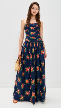 - Fabric: Mid-weight, non-stretch poplin - Non-slip rubber binding at top hem - Smocked elastic back panel - Ruching details with princess seams at front and back - Boned bodice - Thigh-high side slit - Maxi length - Strapless - Sleeveless - Hook-and-eye and hidden zip at back - On-seam side pockets - Shell: 100% cotton - Lined bodice, unlined skirt - Dry clean - Imported, China Style #CCARA30305