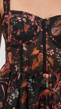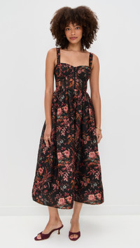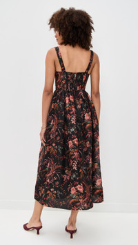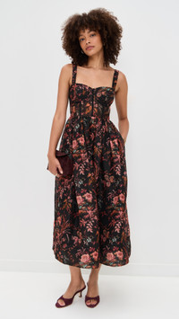 - Fabric: Lightweight, non-stretch organza - Floral print - Semi-sheer, bustier-style boned bodice - Lightly padded cups - Straps with elastic at back - Smocked elastic panel at back - Midi length - Sweetheart neckline - Sleeveless - Hook-and-eye and hidden zip at back - On-seam side pockets - Shell: 52% linen/48% silk - Unlined bodice, lined skirt - Lining: 100% viscose - Dry clean - Imported, China Style #CCARA30326 Size & Fit Customers say: Runs small; please size up. Model measurements: Size 2: Alexis (5'8") usually wears size 0-2 Measurements from size 2 Length: 49.25in / 125.0cm, from shoulder to front hem