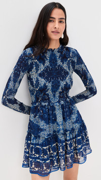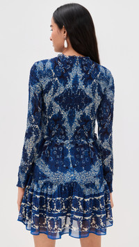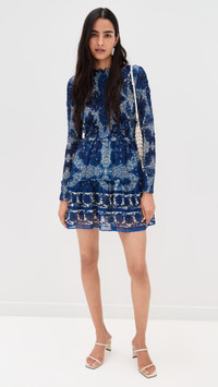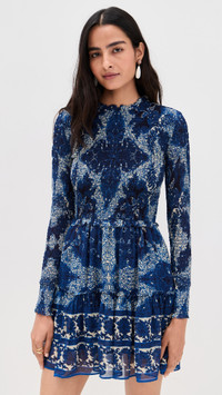 - Fabric: Lightweight, non-stretch chiffon - Flutter hem and ruffle trim - Smocked elastic bodice and sleeves - Mini length - Crew neck - Long sleeves - Hook-and-eye and hidden zip at back - On-seam side pockets - Shell: 100% viscose - Lined - Lining: 100% polyester - Dry clean - Imported, India Style #CCARA30324 Size & Fit Model measurements: Size XS: Priyanka (5'9") usually wears size XS Measurements from size XS Length: 32.25in / 82.0cm, from shoulder