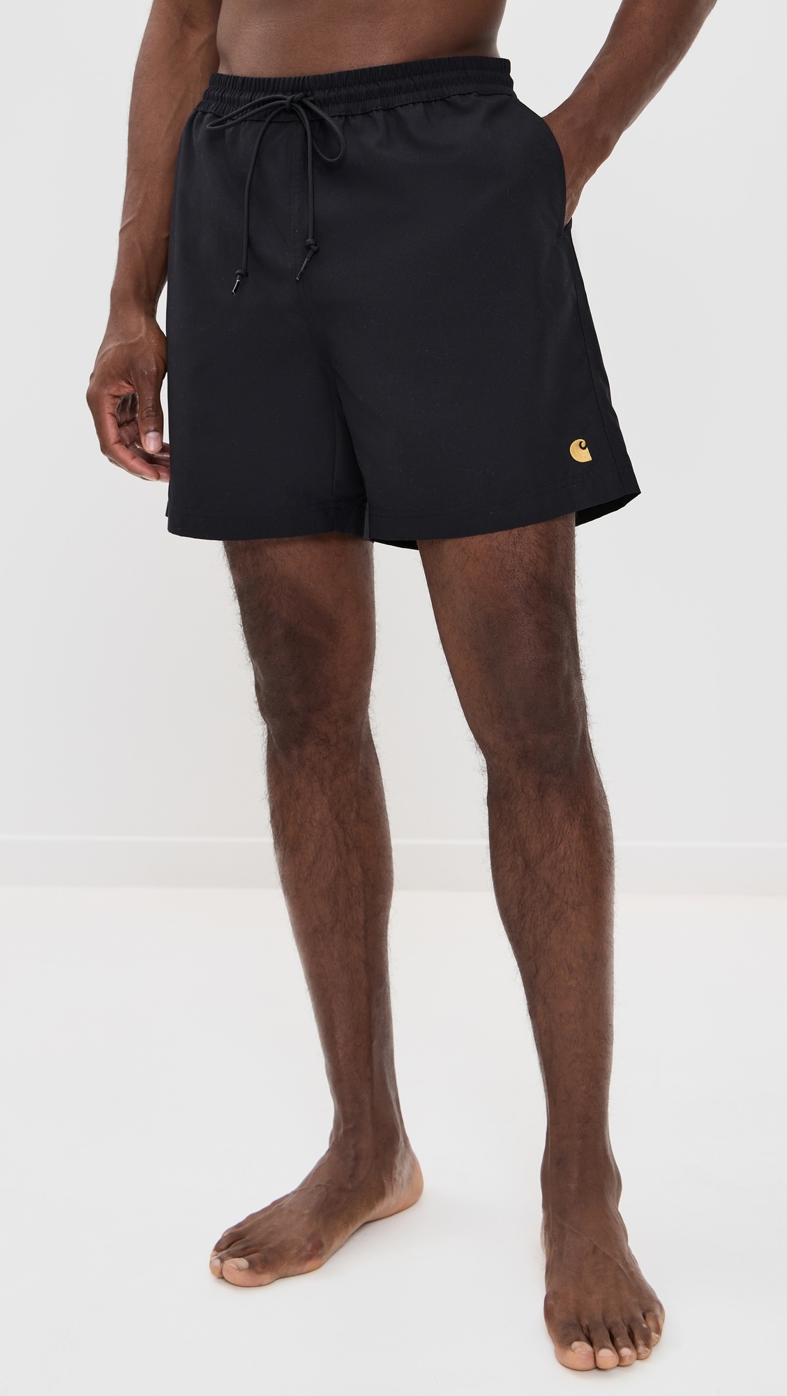 - Fabric: Lightweight, non-stretch weave - Embroidered logo at front - Covered elastic waist with drawstring - Slant hip pockets and patch back pocket - Shell: 100% polyester - Mesh lining - Wash cold - Imported, Bangladesh Style #CARHA30998 Size & Fit Model measurements: Size L: Magor (6'3") usually wears size L Measurements from size L Rise: 13in / 33cm Inseam: 5.5in / 14cm Outseam: 17.75in / 45cm