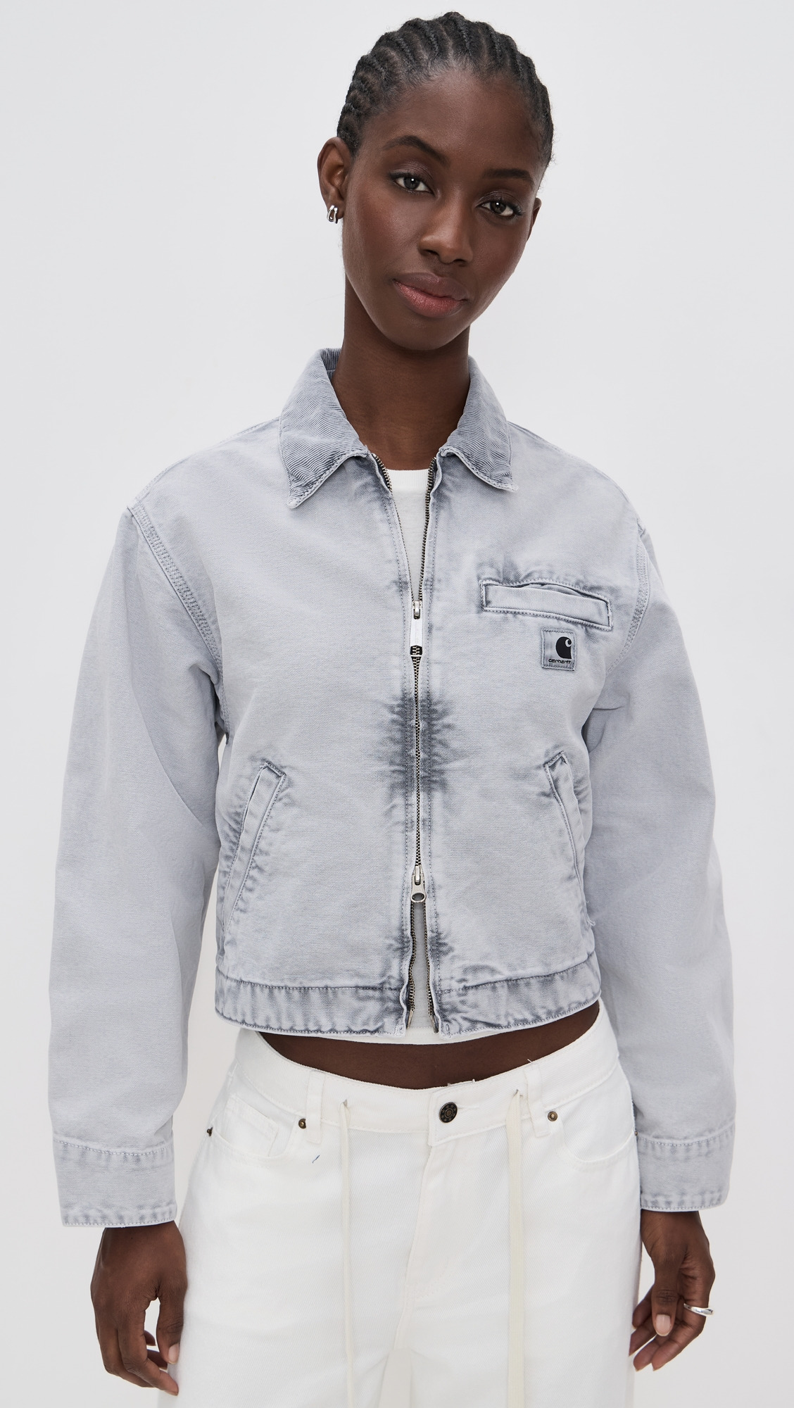 - Fabric: Mid-weight, non-stretch canvas - Tonal corduroy trim at collar - Welt breast pocket - Adjustable snap tabs at waist - Collared neck - Long sleeves with snap cuffs - Two-way zip closure - Slant hip pockets - Shell: 100% cotton - Unlined - Wash cold - Imported, Tunisia Style #CARHA30924