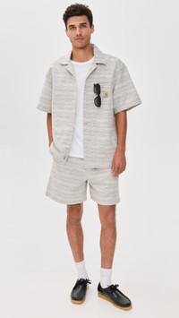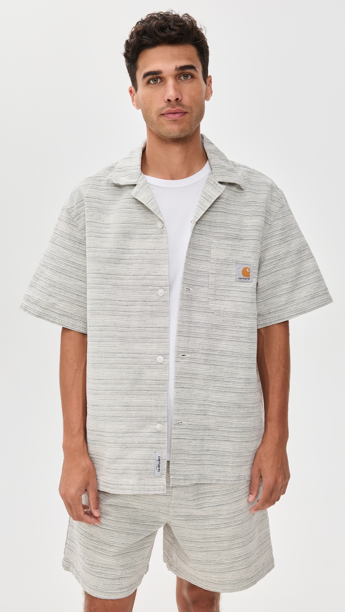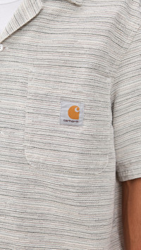- Fabric: Heavyweight, non-stretch jacquard weave - Camp collar - Short sleeves - Button placket - Patch breast pocket - Shell: 100% cotton - Wash warm - Imported, Tunisia Style #CARHA30932