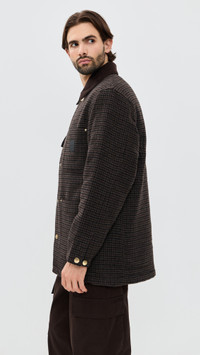 - Fabric: Heavyweight, non-stretch wool weave - Houndstooth pattern - Collared neckline - Long sleeves with button cuffs - Button placket - Patch front pockets - Shell: 60% polyester/40% wool - Lined - Lining: 100% polyester - Hand wash - Imported, Bangladesh Style #CARHA30951 Size & Fit Model measurements: Size M: Gordon (6'1") usually wears size M Measurements from size M Length: 32.25in / 82cm Sleeve: 33.75in / 86cm Chest: 47.25in / 120cm